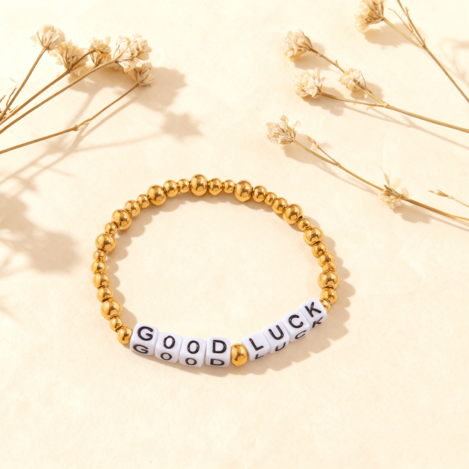 Some words hold magic. "Good Luck" for courage on days you need it most. "Love" is a constant reminder of what truly matters. Our Gold Beaded Letter Bracelet is more than an accessory; it's a wearable wish, a daily mantra, and a beautiful token of intention that carries a powerful message, always visible where you can see it.