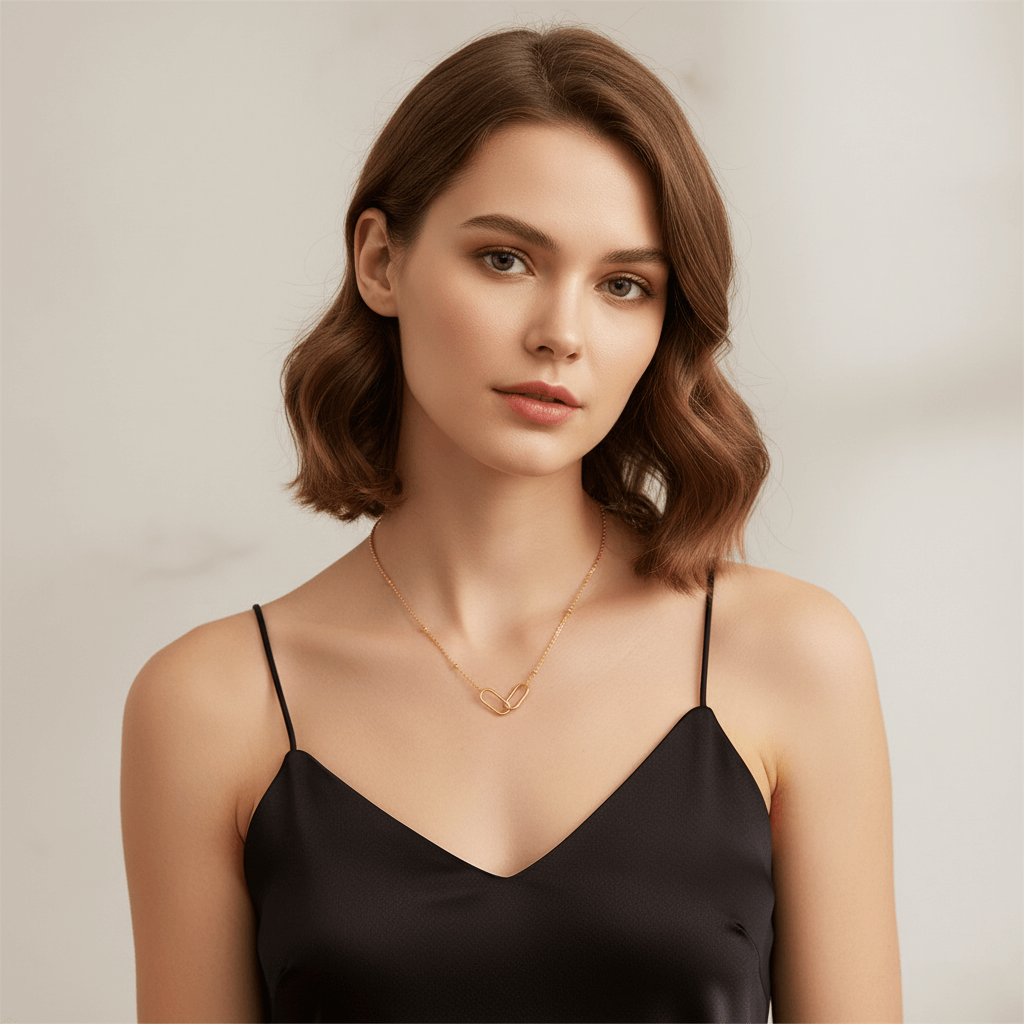 Some connections are meant to last a lifetime. Our Linked Circles Necklace captures the profound beauty of these bonds in a single, elegant gesture. Two individual circles, seamlessly linked together, create a symbol of unity, eternal love, and the unbreakable connections that define our lives.