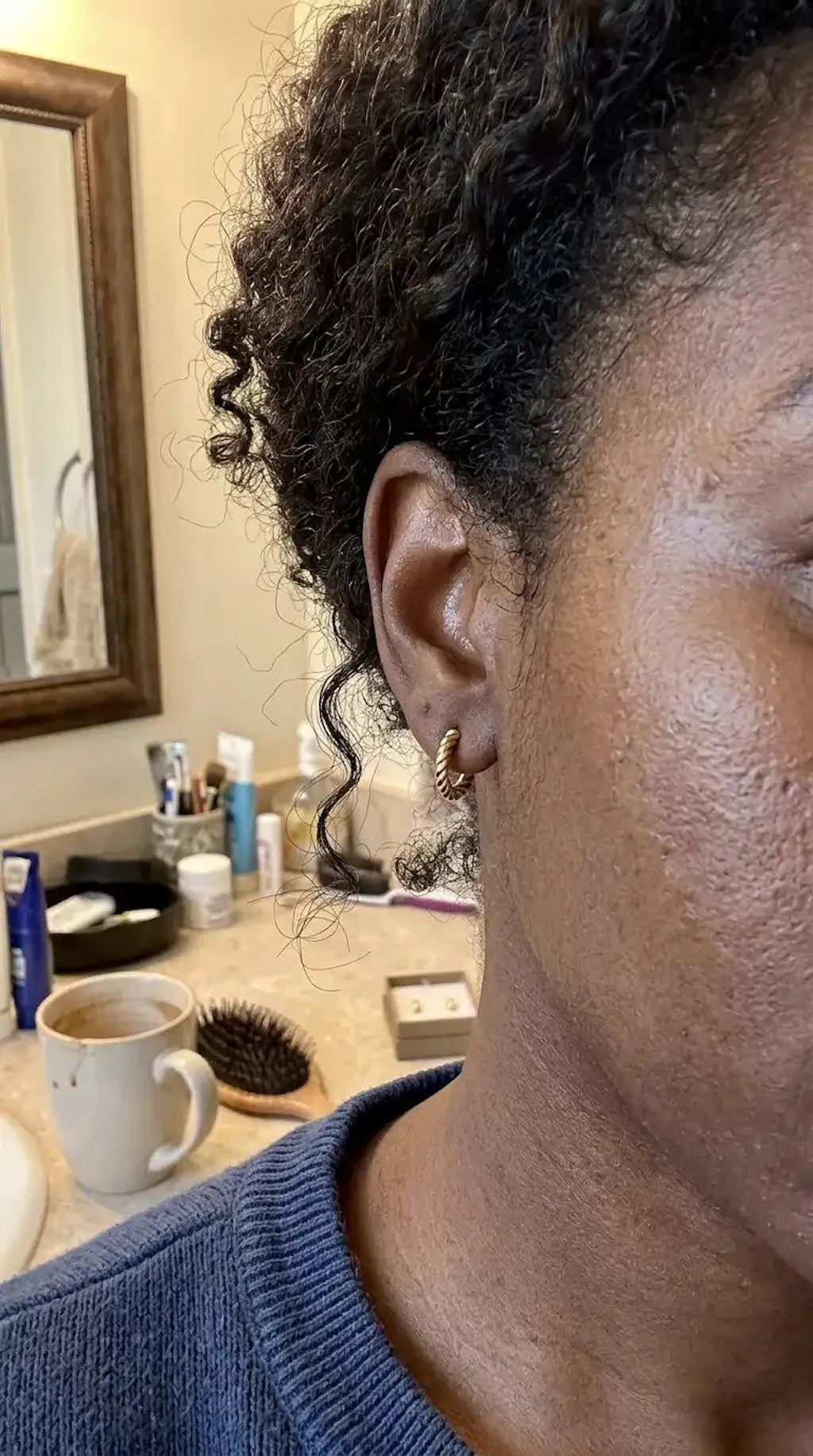 The Cartilage Companion. If you have multiple piercings, use the larger Mila Hoops in your main lobe and place the Rory Huggies in your upper cartilage or second hole. The rope texture adds a sophisticated detail to your ear stack.