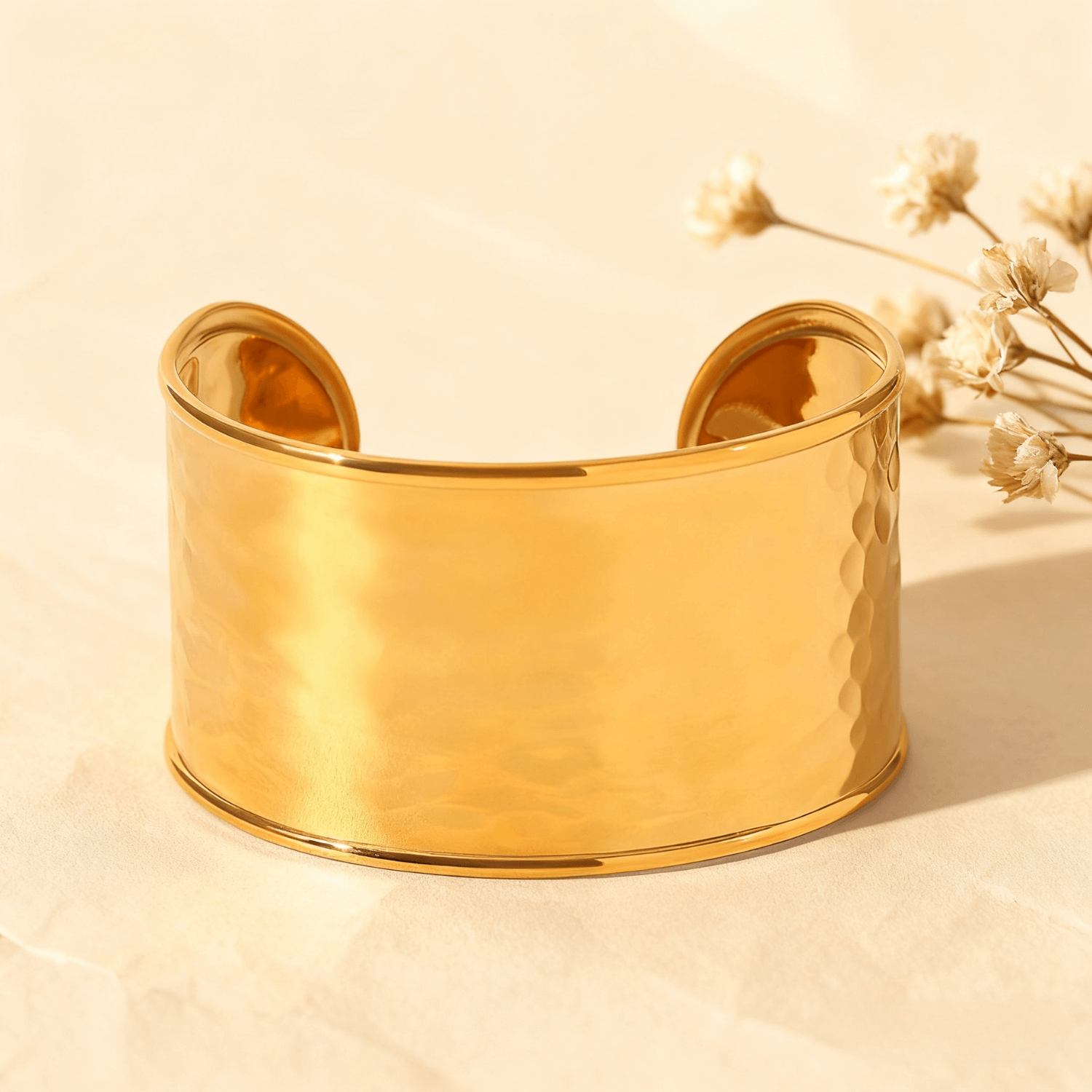 - Architectural Open Circle Design: Features a wide, sleek cuff with a deliberate break. This modern silhouette is both bold and minimalist, creating a powerful yet understated statement that catches the light and attention.