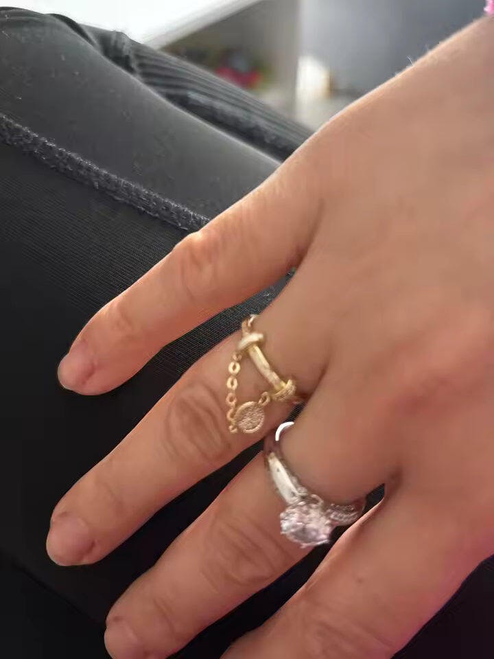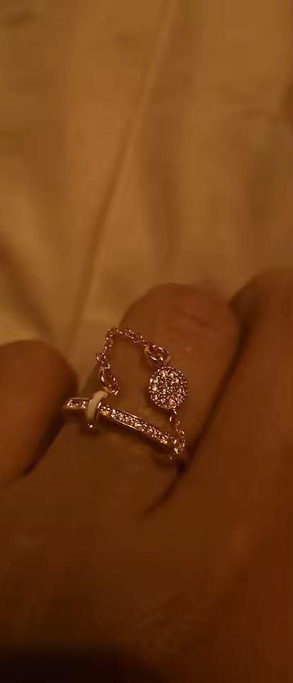 Gold Dangle Ring | Pavé Charm & Chain Ring | Adjustable & Dainty