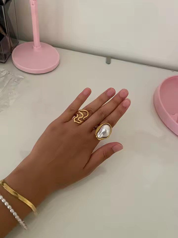 At the heart of the Theia Ring lies a genuine Baroque pearl, each one naturally formed and utterly unique. No two rings in the world are exactly alike. The pearl you receive is your own personal treasure, with its own distinct shape, luster, and story. It’s a powerful reminder that true beauty is never standard. The pearl is cradled in a sculptural, molten-like setting of rich gold, echoing the organic forms of nature. It's bold, it's artistic, and it's designed to be noticed.